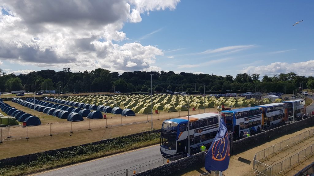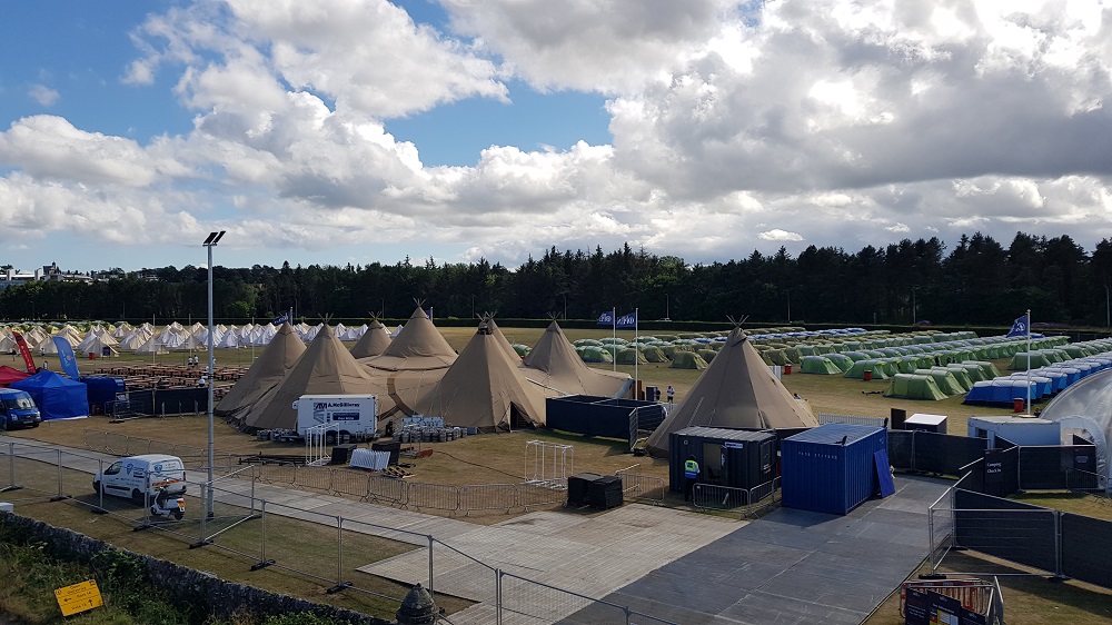 Getting there was easy. I booked overnight parking for my car for £15 per night and free transfers by Park & Ride bus to the tented village. I stowed my car safely at the fields next to Leuchars Train station and boarded a bus with six other campers.
