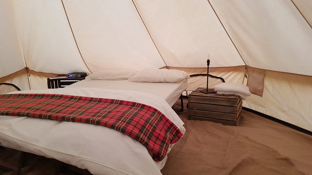 I’m flushed with endorphins and enjoy a pint of Belhaven Best and a wee dram ahead of my night spent Glamping at The Open. Only four hours later, I’m reminded that despite the warming nostalgia of my University years, Glamping (glamorous camping) is still camping.